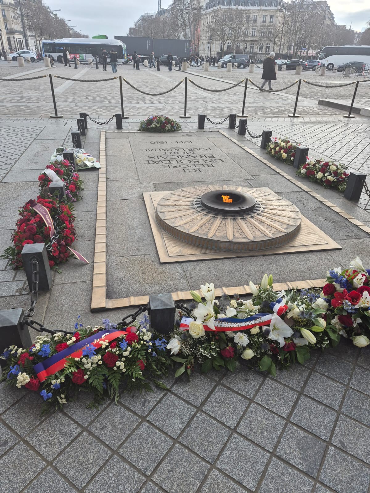 La matinée a débuté par la visite de l’Arc de Triomphe et un moment de recueillement devant la tombe du Soldat inconnu, avant une promenade sur les Champs-Élysées. Les élèves ont ensuite profité d’une pause détente et déjeuner aux jardins des Tuileries.